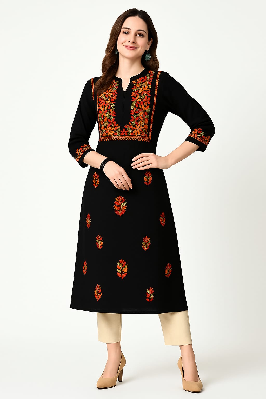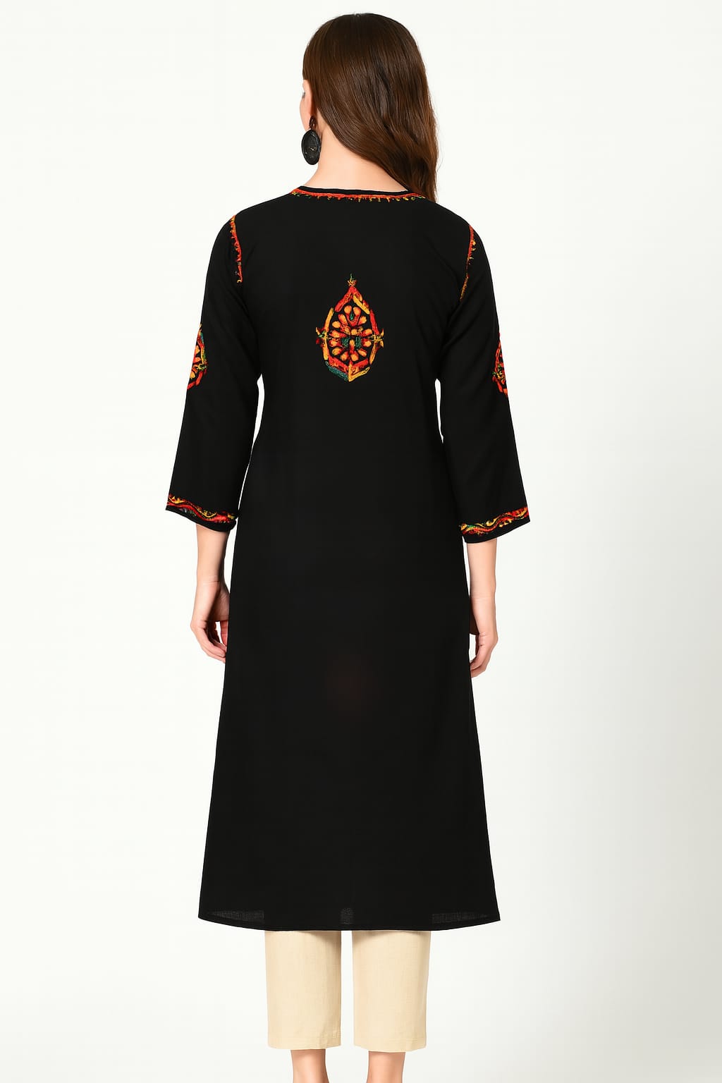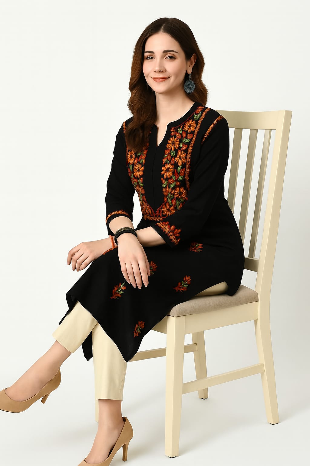 Women’s Black Cotton kurti with Lucknowi Hand Embroidery
