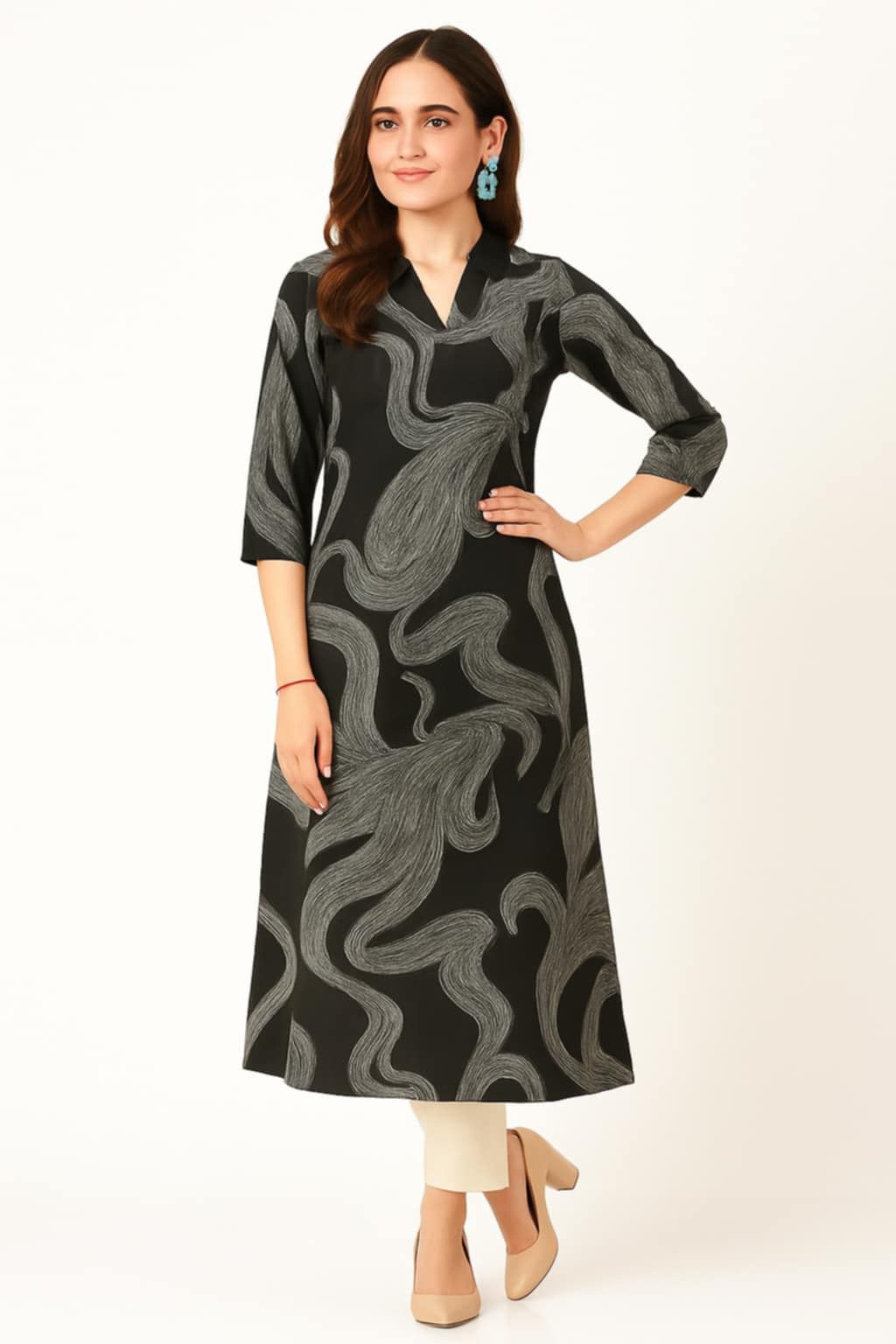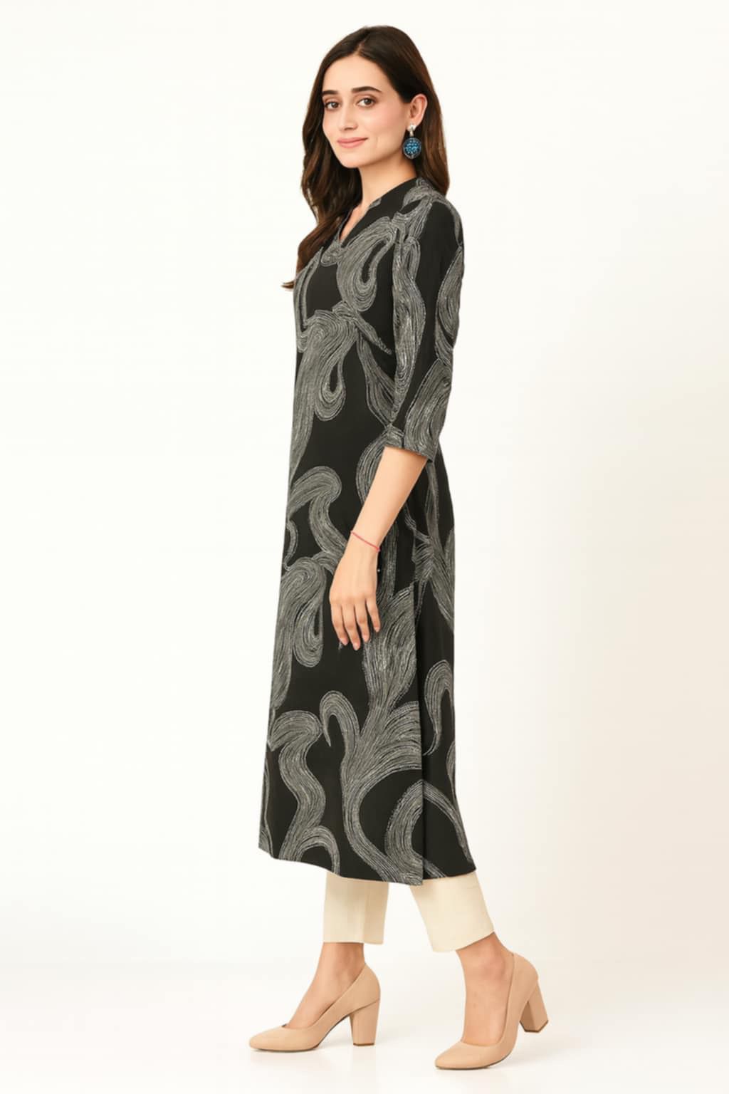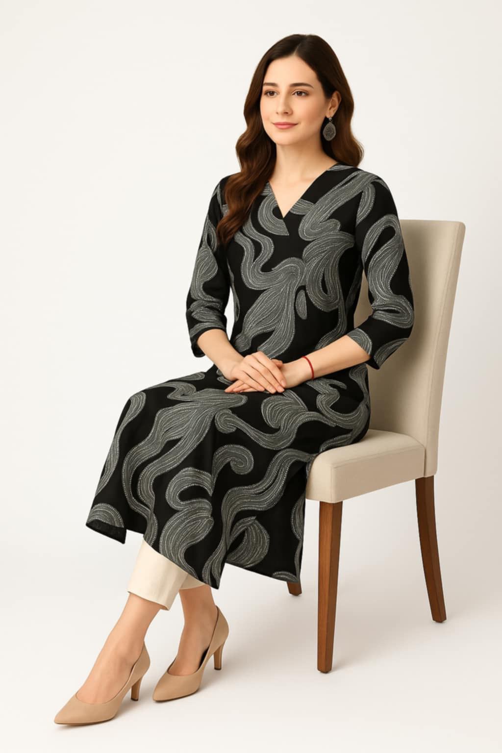 Women’s Black Printed Rayon Straight Kurta – Daily & Office Wear