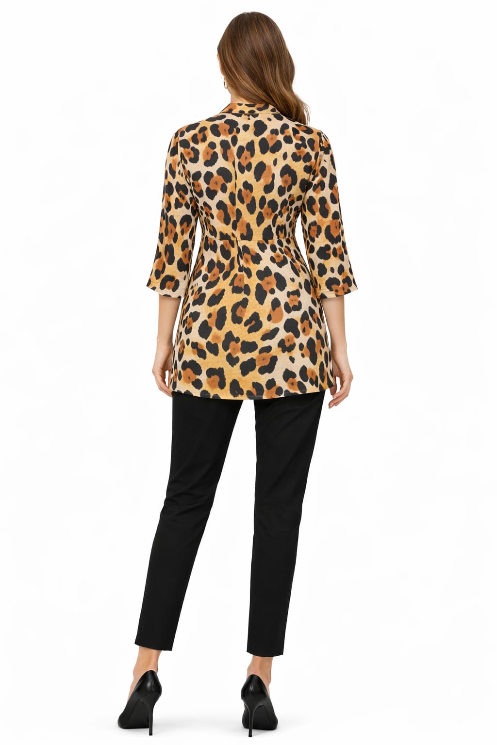You have 1 item in your cartWomen’s Brown Leopard Print Rayon Top | Mandarin Collar Straight Fit Top | 3/4 Sleeve Indo-Western Wear