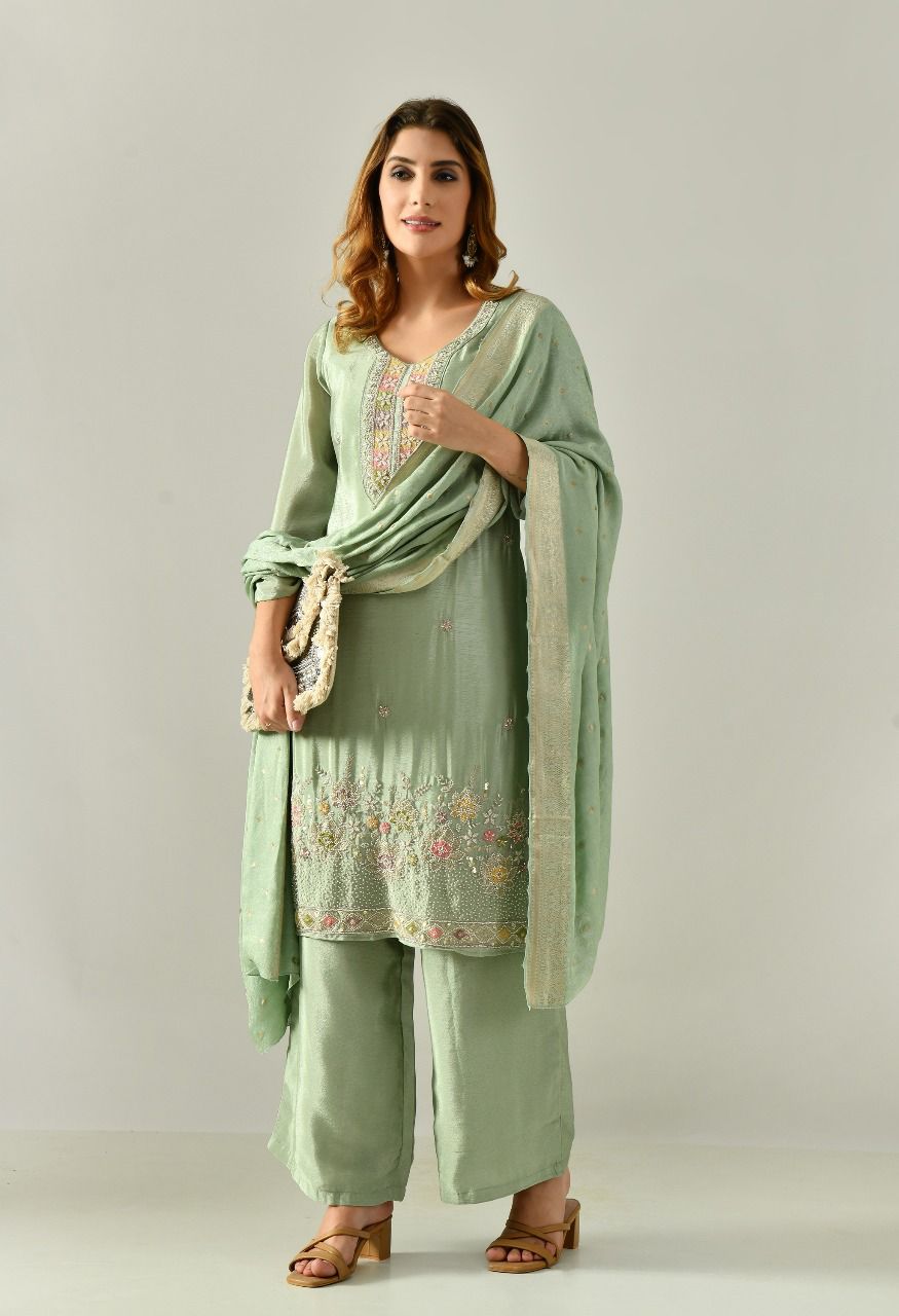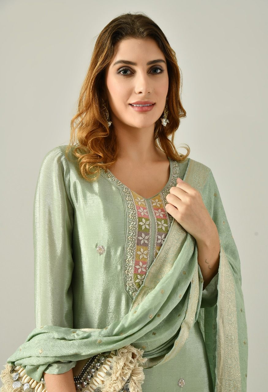 Women’s Light Green Embroidered Kurta Set with Dupatta | Elegant Festive & Party Wear Suit