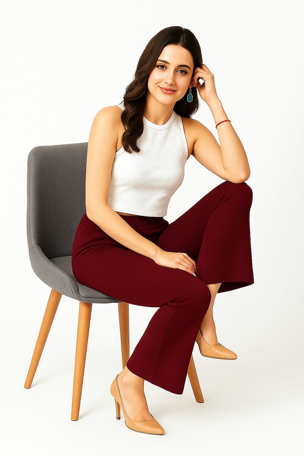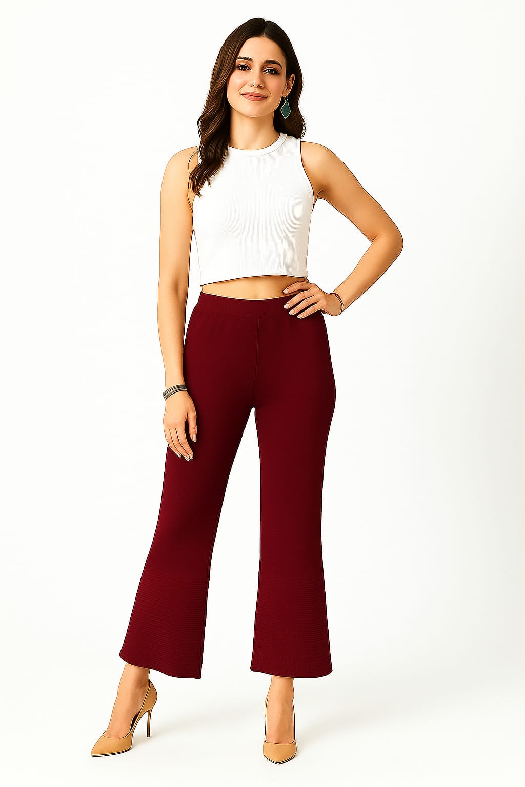 Women’s Maroon Woolen Palazzo Pants | High-Waist Winter Warm Trousers | Flared Straight Fit Wool Blend Bottoms
