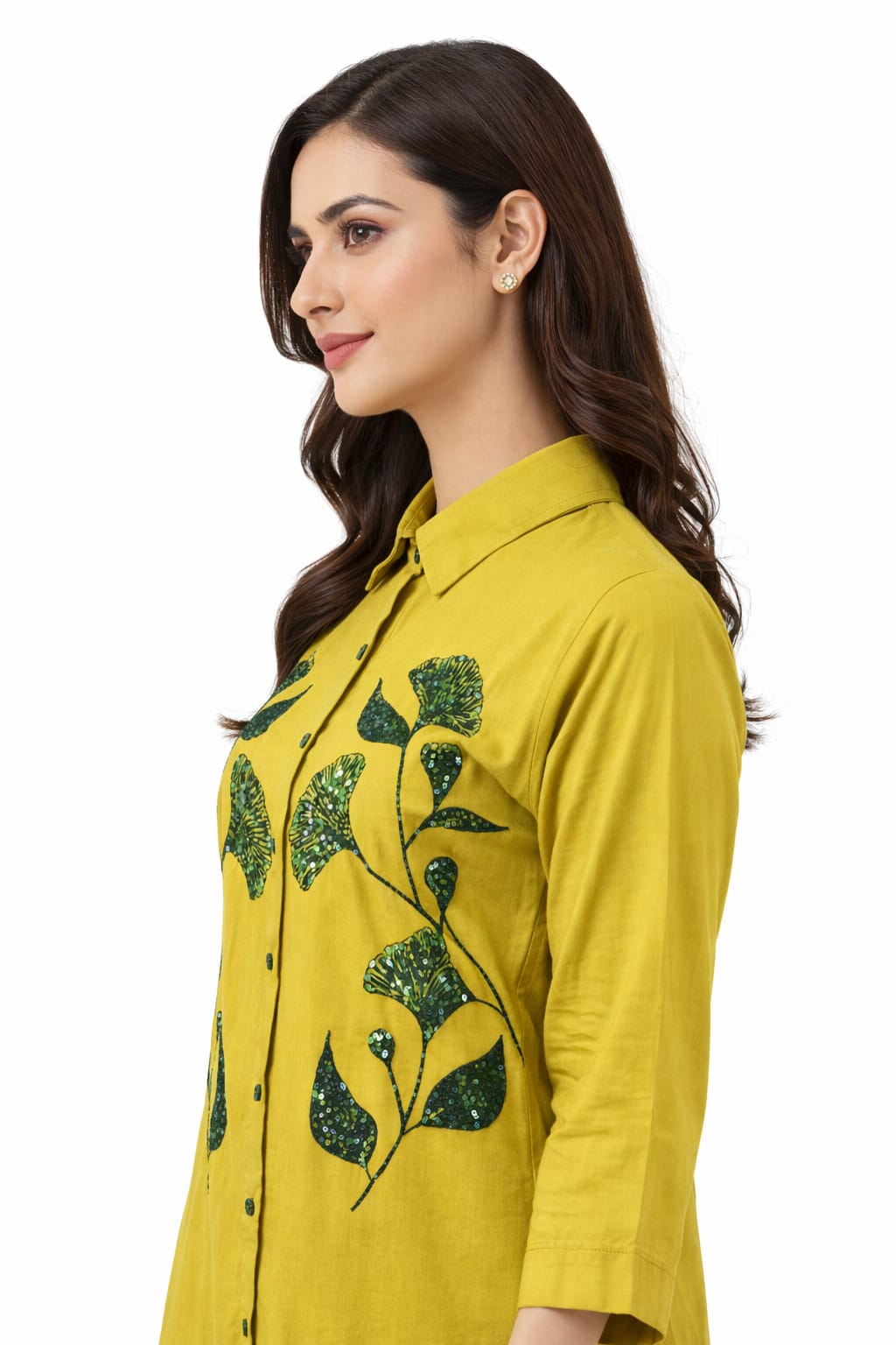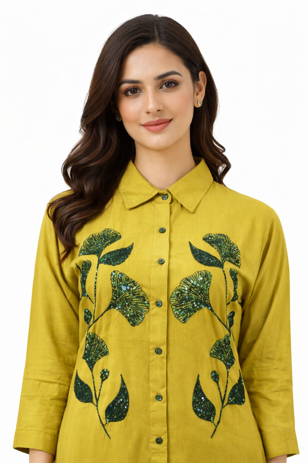 Stylish Shirt Collar Design: Classic collared neckline with full front button placket.
