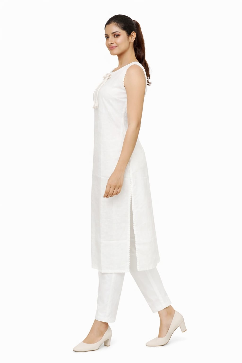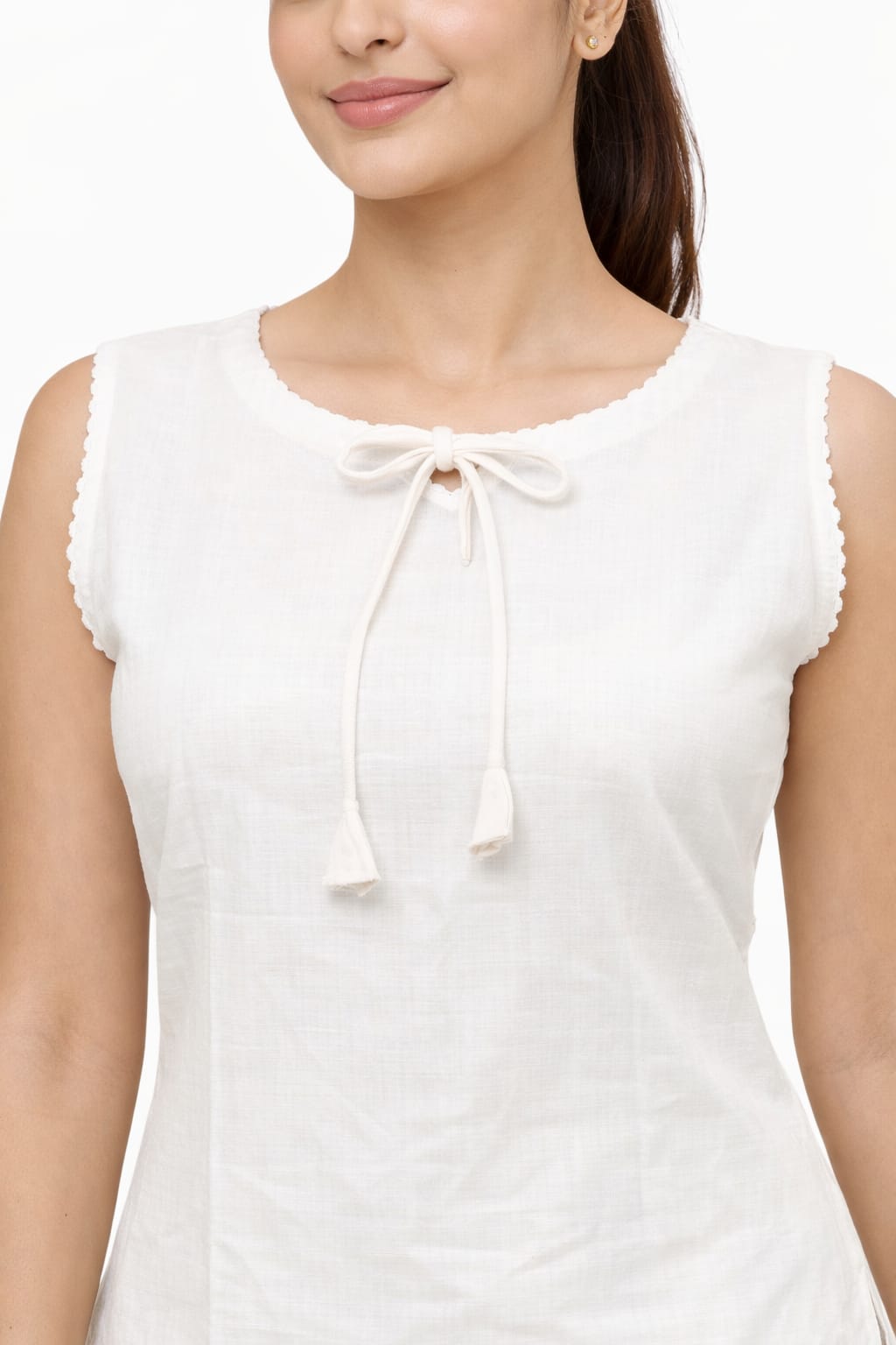 Women’s Pure Cotton Solid Sleeveless Kurti | Round Neck Tie-Up Detail | Straight Casual & Daily Wear Kurta
